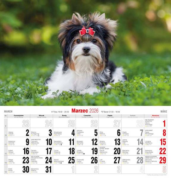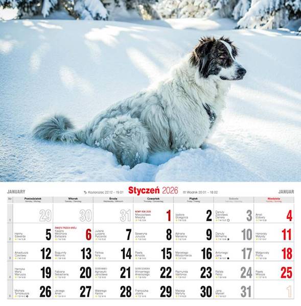 Kalendarz 2026 Avanti Ścienny 32x32 Psy